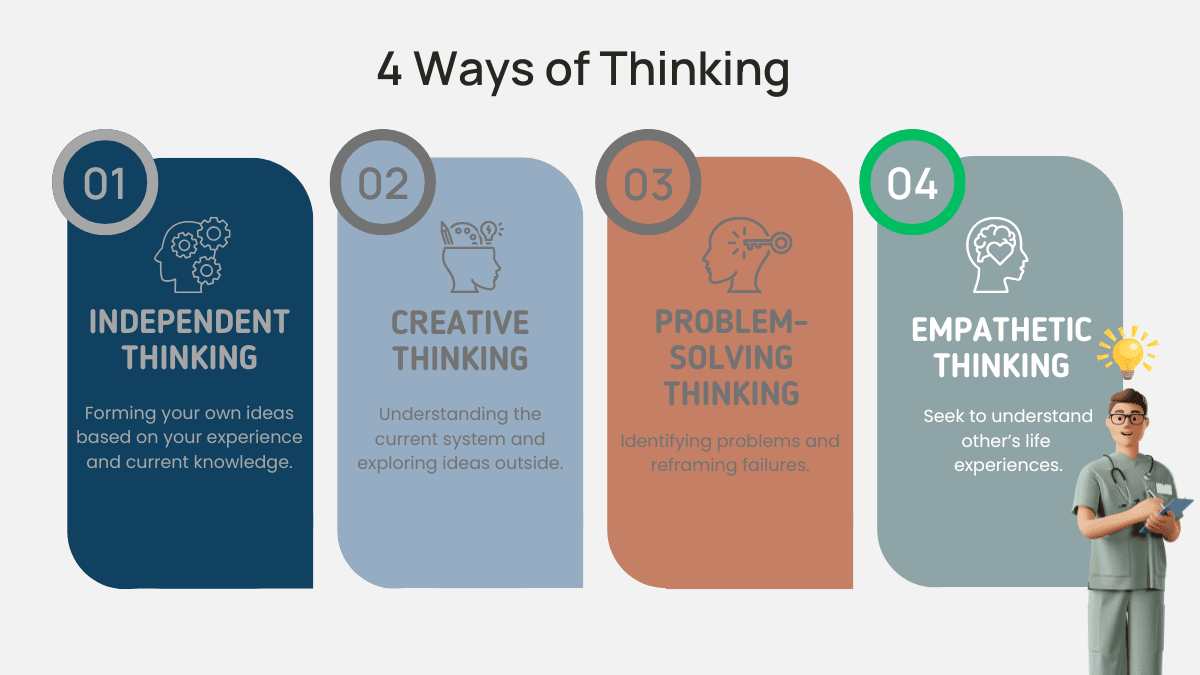 These questions take us to part four of this series on ways of thinking in nursing education. So far, we have covered three types of thinking valuable for every nurse, no matter their workplace or the future of healthcare: