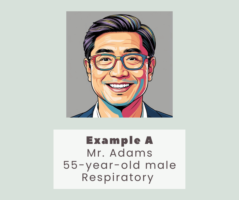 Medical-Surgical Course: Mr. Adams is hospitalized with pneumonia. Students assess his respiratory status, implement oxygen therapy, develop care plans, and investigate antibiotic regimens.