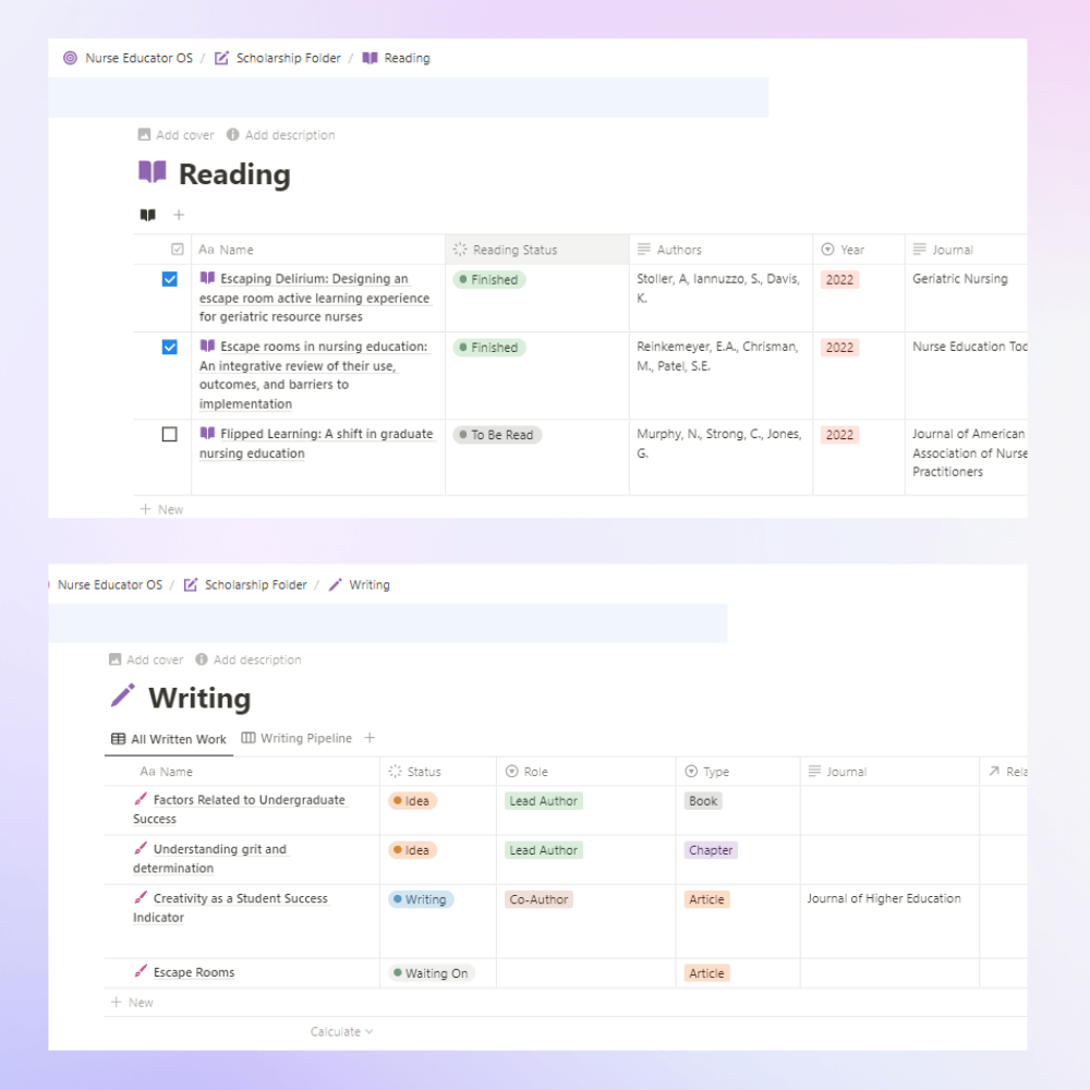 ๐ท๏ธ Use a tagging system - As we discussed last week, using a four-folder system can be a great way to organize information. But as our knowledge increases, the web of connections becomes more complex. Articles I read about โeducational escape roomsโ could also reference direct ideas I want to use in a clinical course. Or I may encounter ideas about educational escape rooms across various resources, such as conferences, podcasts, or meetings. If you are using a system like Notion, you can โtagโ all of your notes. Then, when the time comes to write an article or develop an activity, you can reference the whole library of information you have curated about educational escape rooms.