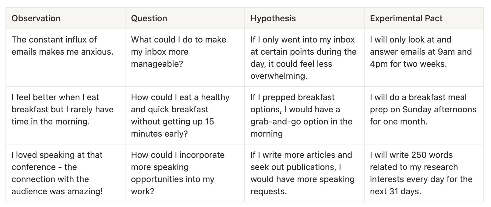 📆 Over the next three weeks, we will review the three steps of a tiny experiment. Starting with a pact.